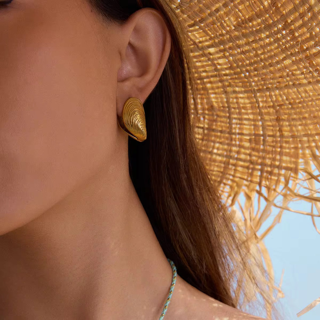 Embrace coastal chic with our Golden Scallop Studs. These 18K gold-plated earrings feature a classic...