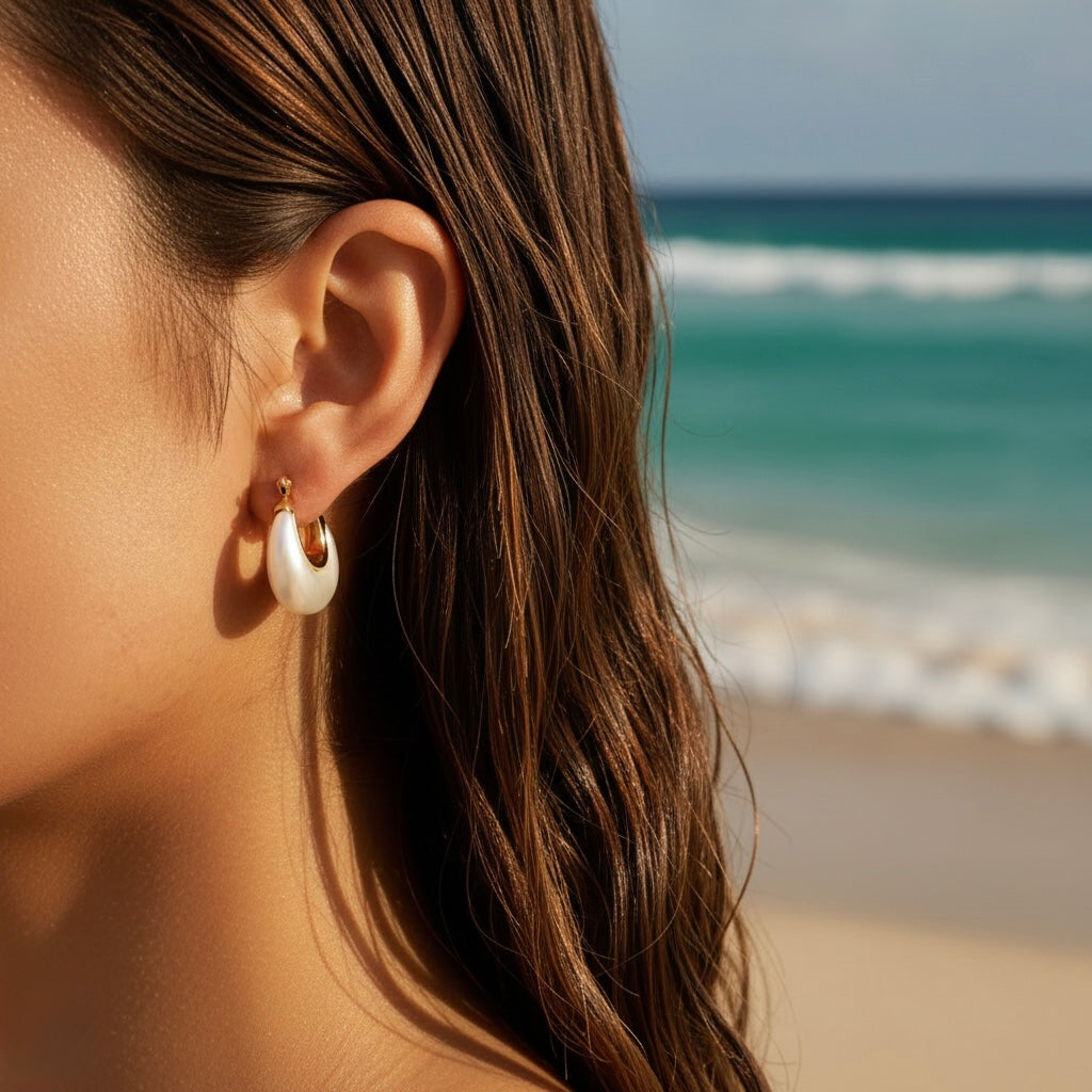 Pearl Teardrop Huggie Hoops